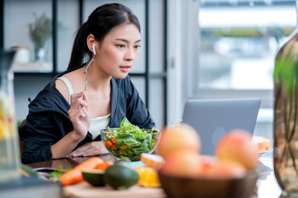 Eating mindfully and slowly, away from distractions, can help to ease judgement and manage appetite. It can also help to improve the relationship with food in the long term.